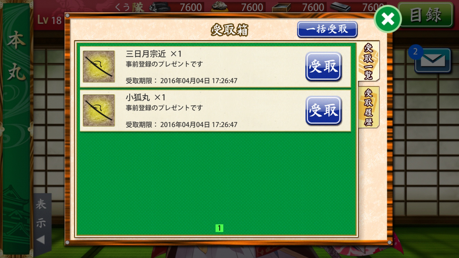 事前登録でもらえる刀だけでも受け取ろうと思って(^^)。
