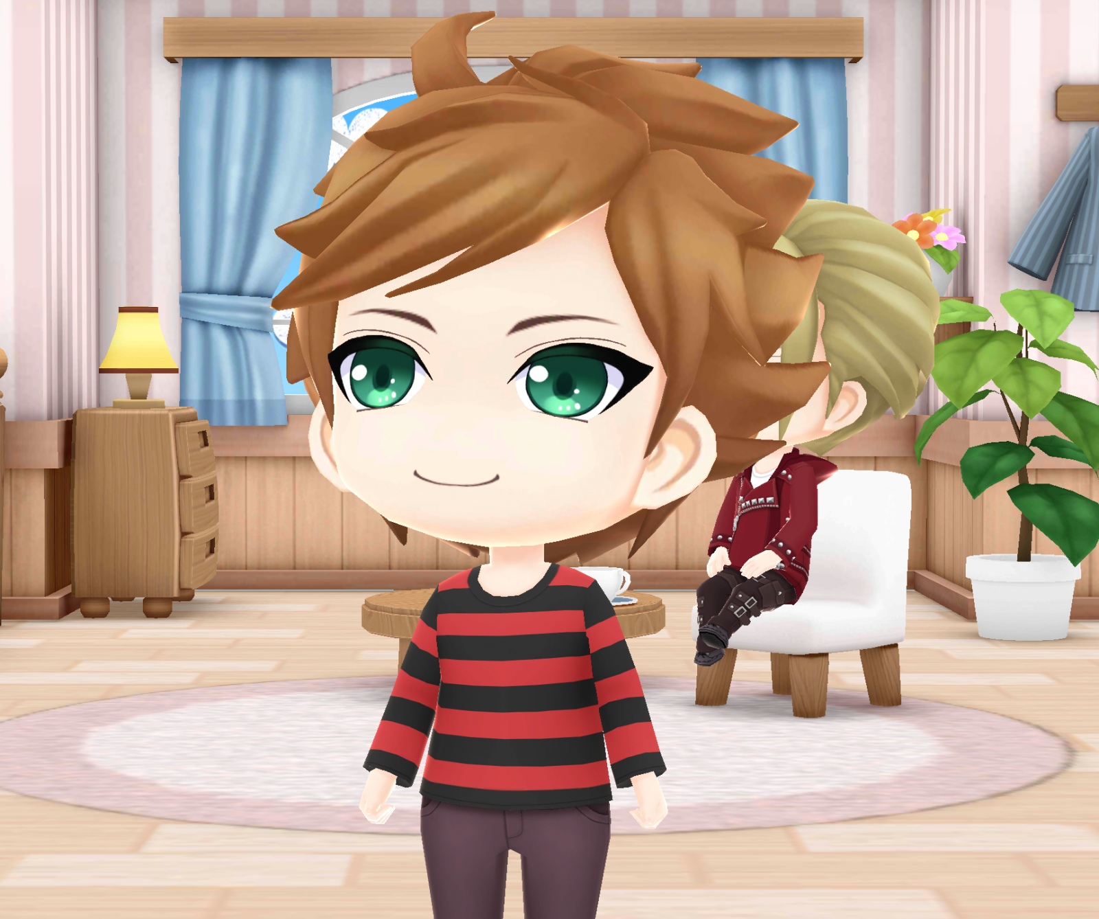 チェンジ!。 カードゲットしたので、コスチュームを変えたよ(笑)。部屋の中ってことで、ラフな感じがいいね(〃▽〃)。そして、本日は斜め上を向かせてみたwww。…昨日upした、たいがくんも若干、上を見ている感じではあるがwww。昨日の日替わり曲は奥結くんだったのに・・・私には難しすぎた!!!。結局、クリア出来ず(^^;)。好きな曲なだけに悔しいwww。クリア目指して頑張るぞー!!!。今だNORMALでコツコツプレイ中♪。なので、ポイントがたまらない/(^o^)\。