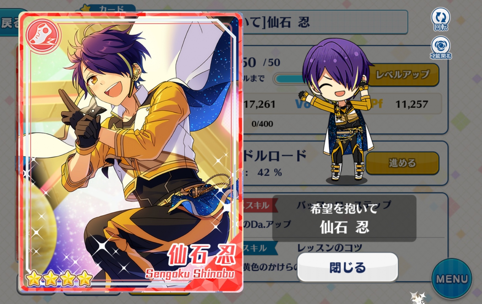 今回のイベント報酬で手に入れた忍くんを開花\(^o^)/。